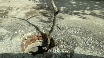 В Керчи прошел месяц, как начали ремонт внутриквартальной дороги на Буденного, 30. Установили паспорт объекта, сняли старый асфальт, а в открытый люк вставили ветку и на этом работы завершили.