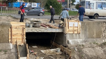 В Керчи 24 сентября на Вокзальном шоссе продолжают работы по расширению ливневки. Рабочие ее расширили на два метра, она значительно увеличилась. Это делается для того, чтобы при сильных осадках вода быстрее уходила в речку Мелек-Чесме, - передает Керчь.ФМ.