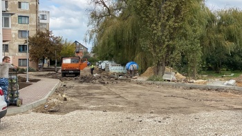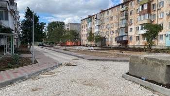 В Керчи 23 сентября во дворе на Гайдра, 9 и Бувина, 6, 7 продолжают работы по реконструкции дворов. С последнего визита 6 августа журналиста Керчь.ФМ в данный двор есть изменения. На данный момент рабочие подготавливают дорогу к асфальтировке. Пешеходные дорожки - готовы, вот только фонари уличного освещения еще не установили. Также, завезли землю для клумб.