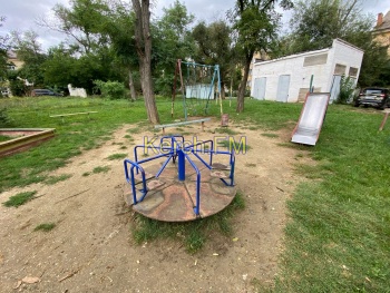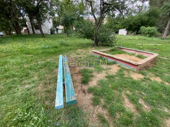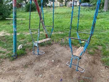 Рядом с разрушающимися домами на улице Славы, а также дорогой, о которой Керчь.ФМ делал материал летом, детская площадка также заразилась «разрухой». Если бы сейчас было тепло, то для клещей здесь - настоящий рай, ведь трава тут везде. Качели можно использовать для съемки хорроров, да и сама детская площадка в целом годится под это дело.