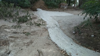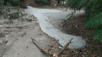 На одной из дорог рабочие соорудили ливневку, чтобы она не размывала дорогу.