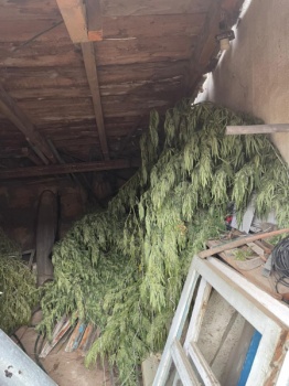 Злоумышленник задержан с поличным в период сбора незаконного урожая. Сотрудниками полиции на грядках обнаружены 11 кустов конопли, также в придомовых постройках были изъяты развешенные для просушки уже сорванные растения. Общая масса изъятых наркотических средств составила более 10 килограммов.