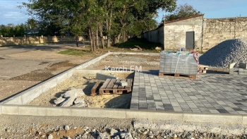 Рабочие залили фундамент для монумента. Также уложили плитку на территории.