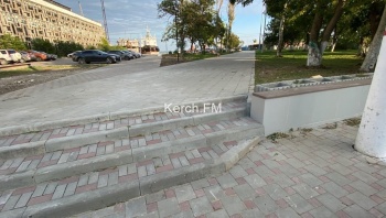 В Керчи на морвокзале остновились работы по восстановлению территории после потопа. На аллеи установили плитку, привели в порядок газоны. Стоит отметить, что на пешеходной дорожке не хватает пары плиток, также не заасфальтировали дорожное полотно. Рабочих здесь не видно уже несколько дней.