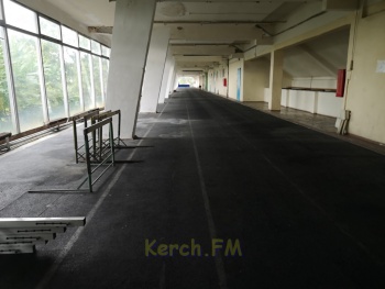 Оборудованный легкоатлетический манеж находится в левом крыла под трибунами. И если в начале крымско-российского периода на первом этаже были оборудованы раздевалки и душевые, то до второго этажа ремонтные работы не дошли. Там протекает кровля, на потолке грибок и пятнами от отставшей штукатурки и подтеками. И в этом помещении занимаются дети. Самое опасное, кроме того, что дети, занимаясь активным спортом дышат остатками штукатурки, это открытые секции пластинчатых батарей, вдоль которых проходит дорожка.