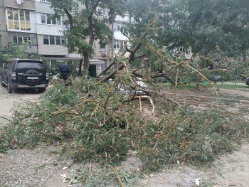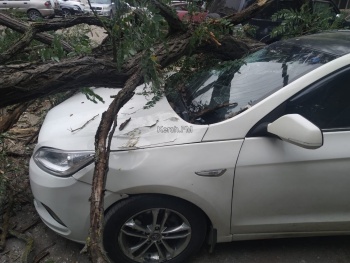 Отметим, за последние пару месяцев у этого дома в третий раз падает дерево. Одно дерево упало в этом же месте, но сильно не зацепило автомобили. Второе упало рядом на детскую площадку, но к счастью, никто там не пострадал.