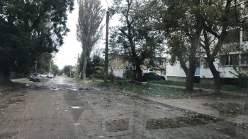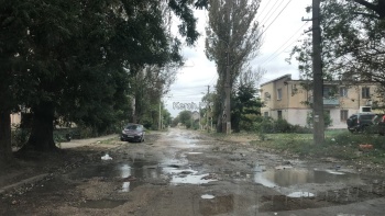 Здесь, еще утром 5 октября произошел сильный порыв водовода. Чистая вода залила дорогу и ближайшие улицы. Сегодня с утра бригада водоканала с помощью техники устраняет порыв.