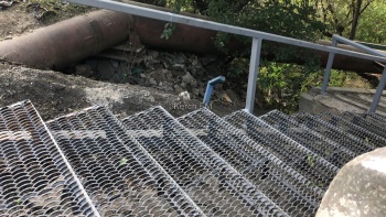 Отметим, ниже лестница продолжает рушиться и ползти вниз. Керчане надеются, что к сезону этот ремонт доживет.