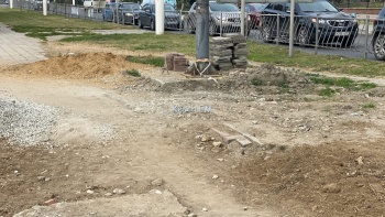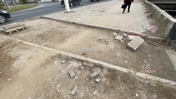Работы по расширению завершили еще в сентябре, но вот плитку и бетонное покрытие не восстановили. Также требуется, еще восстановить плитку на парапете. На данный момент керчанам приходится передвигаться по песку.