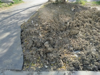Теперь здесь не хватает куска асфальта. А бордюры просто сняли и положили рядышком. Видимо, все так теперь и останется.
