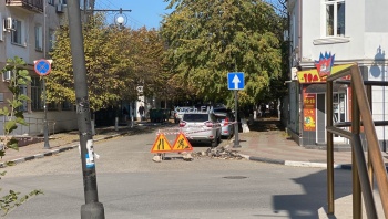 В Керчи 18 октября на улице Дубинина продолжают проводить работы «Крымтеплокоммунэнерго». Для этого специалисты уже в нескольких местах разрыли проезжую часть. Напомним, работы здесь начали 13 октября.