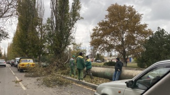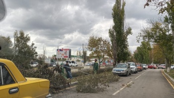 Около больницы №1 в Керчи обрезали ветки деревьев