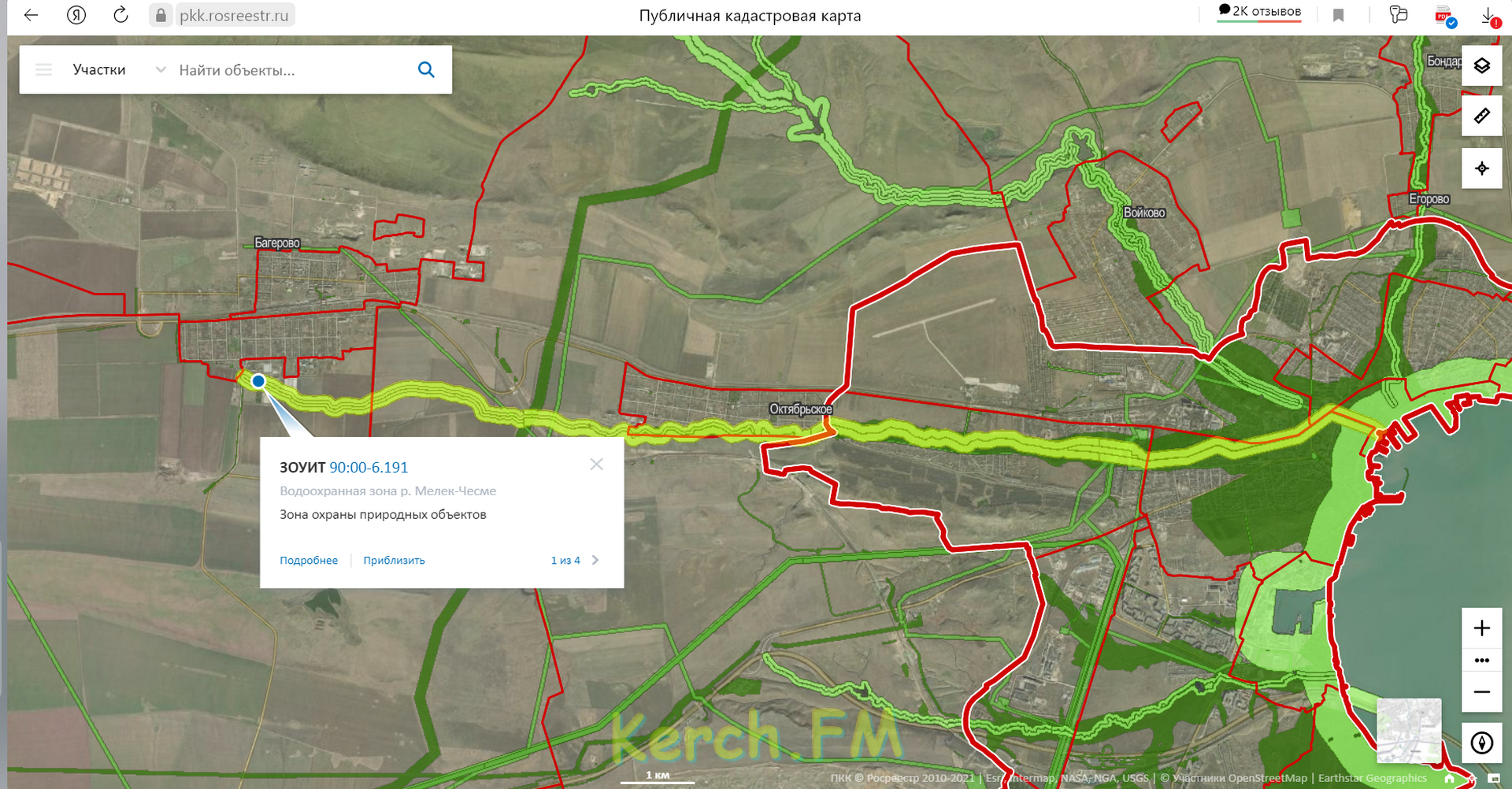 А если подходить к решению проблемы подтопления Керчи с умом, а не для камеры, то подход к расчистке Мелек-Чесме должен был быть совместным с администрацией Ленинского района, так как согласно данным Росреестра водоохранная зона реки Мелек-Чесме начинается от перекрестка улиц Шоссейная и 1 Мая в Багерово.