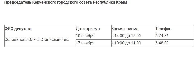 Пресс-служба горсовета Керчи сообщает график приема граждан в телефонном режиме депутатским корпусом Керченского городского совета 2 созыва в ноябре 2021 года, - передает Керчь.ФМ