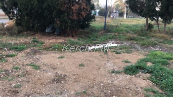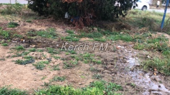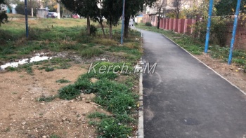 По словам керчан, вода не просто течет по земле, она уже много дней подмывает новую пешеходную дорожку.