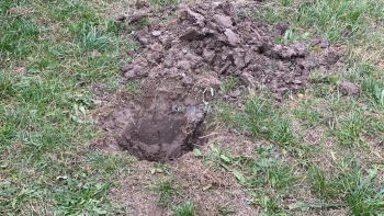 Также выкопали лунки под зеленные насаждения. Ранее, здесь уже высадили 20 саженцев туи