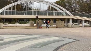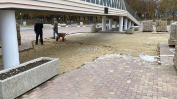 В Комсомольском парке начали работы по восстановлению территории. Сегодня, 9 ноября, около арки рабочие сняли часть плитки, и утрамбовывают песок под следующую укладку плитки, - передает Керчь.ФМ.
