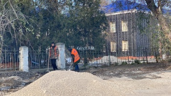 В Керчи 17 ноября на улице Суворова возобновили дорожные работы. Ранее мы писали, что в сентябре работы остановили. Сегодня, рабочие готовили территорию под будущие тротуары. На улице установили новые бордюры, - передает Керчь.ФМ.