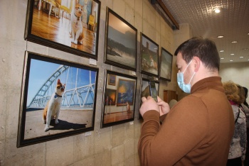 На выставке в картинной галерее представлены работы о путешествиях кота Мостика, крымские пейзажи, также рисунки подписчиков.