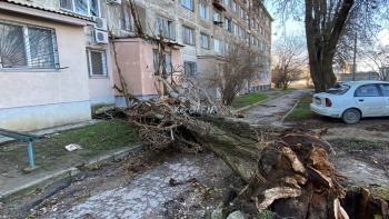 В Керчи 1 декабря на улице Капитана Алиева, 12 сильный ветер повалил тополь. Дерево при падении повредило крышу пристройки на первом этаже, на балконах, снесло несколько кондиционеров, оборвало провода и перекрыло дорогу, - передает Керчь.ФМ.