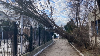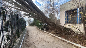 В Керчи 2 декабря над дорогой повисло дерево. Оно упало во время сильно ветра 1 декабря. Стоит отметить, что под ним ходят люди, так как это единственный удобный проход к морю и частному сектору, - передает  Керчь.ФМ.