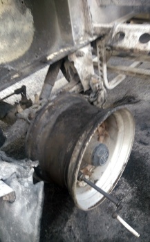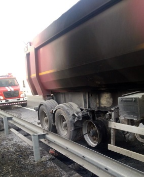 По прибытии спасатели выяснили, что во время движения у полуприцепа грузового автомобиля заклинило и после загорелось заднее колесо.