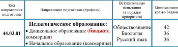 Выпускники общеобразовательных школ и СПО (при  отсутствии родственных образовательных программ), должны предоставить результаты ЕГЭ по обществознанию, биологии, русскому языку.