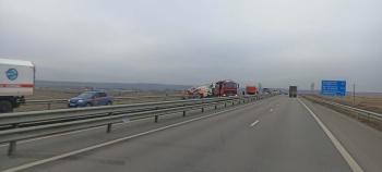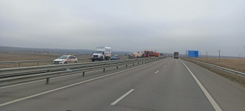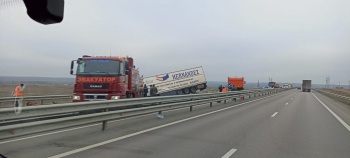 Фура врезалась в отбойник и вылетела с дороги. На месте работают правоохранители, движение в сторону Керчи затруднено.
