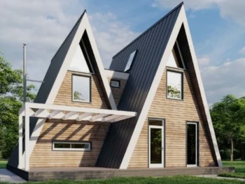 Конструкция A-frame house выполняется в форме треугольника. Такой дом имеет два фасада. Стены при этом отсутствуют - их функцию выполняют скаты крыши, опущенные к самому фундаменту. Здание состоит из каркасной основы, выполненной из нескольких рам треугольной формы. В таком доме можно спроектировать один или два прохода, и даже балкон.