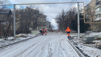 В Керчи 22 декабря улицу Рыбаков перекрыли. Рабочие подготавливают её к асфальтированию. Специалисты с помощью техники очищают дорожное полотно от снега. Здесь работы начали 11 ноября. Завершить тоже должны до конца 2021 года, - передает Керчь.ФМ.