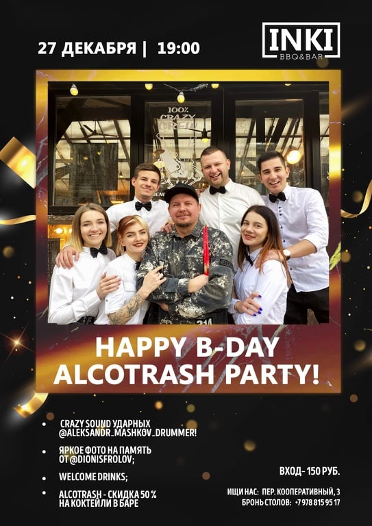 - ALCOTRASH - скидка 50 % на коктейли в баре.