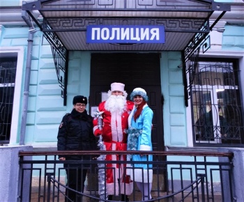 В этом году в роли Полицейского Деда Мороза выступил командир комендантского взвода УМВД России по г. Керчи Роман Сорокин, а роль Снегурочки примерила специалист-эксперт отдела по работе с личным составом УМВД Анастасия Коробкова.