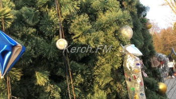 В редакцию Керчь.ФМ постоянные читатели прислали фотографии елки, которая установлена у ДК «Корабел» в Аршинцево. Дело в том, что вечером елка выглядит хорошо и красиво сияет огнями, а вот днем игрушки, которыми она украшена, сильно удивляют.