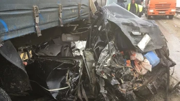 Получили травмы двое людей из легковой машины, на месте аварии работают сотрудники ГИБДД для установления обстоятельств происшествия.