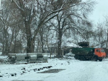 В Керчи 19 января на улице Славы, около дома №2, начали дорожные работы. Специалисты с помощью спецтехники демонтируют старые бордюры. Их сразу грузят в КАМАЗ и увозят, - передает Керчь.ФМ.