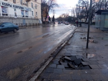 В Керчи еще в прошлом году провалилась плитка у остановки на «Музее». За месяц никто даже не попытался ни засыпать провал, ни оградить, - передает Керчь.ФМ.
