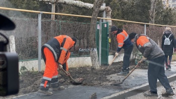 В Керчи 1 февраля на улице Буденного, 30, в районе детского сада, заканчивают работы по благоустройству. Рабочие с помощью спецтехники и лопат усыпают землей газоны. Движение транспорта на 13:00 часов было затруднено. Дорогу и тротуары здесь заасфальтировали, - передает Керчь.ФМ.