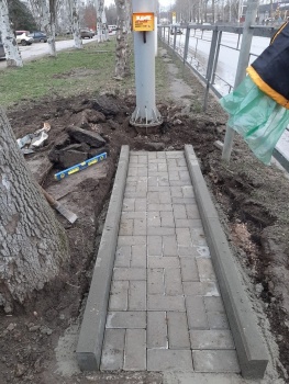 Для удобства пользования кнопочными светофорами на "Промбазе" уложены пешеходные дорожки. Об этом сообщает пресс-служба администрации Керчи, - передает Керчь.ФМ.