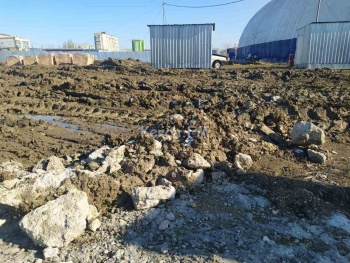 То же самое происходит и с другой стороны улицы. Там строят школу. Строители предусмотрительно поставили табличку «мойка колес», но где мыть, как мыть и чем - непонятно. В итоге, с той стройки грязь и глину везут к Куль-Обинскому шоссе.