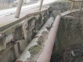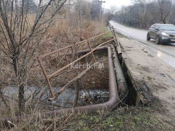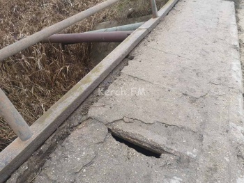 В Керчи разваливается мост по Годыны через Мелек-Чесме. Летние наводнения вырвали ограждения и повредили плиты. Пока проезду машин ничего не угрожает. Разве что вышедший к ним навстречу человек, так как пешеходная часть моста разрушена, - передает Керчь.ФМ.