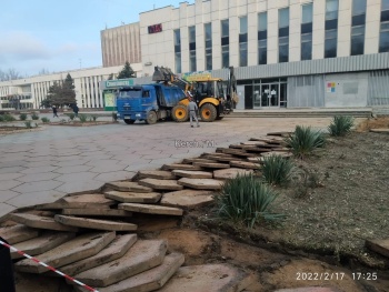 В Керчи у Дворца Спорта появилась техника и рабочие - подрядчик приступил к работам по благоустройству, - передает Керчь.ФМ.