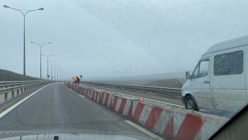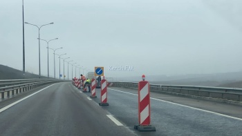 На автоподходах к Крымскому мосту со стороны Керчи идут укрепительные работы. По полосе движения от моста в Керчь перекрыта одна полоса дороги конусами и бетонными блоками. Это связано с работами по укреплению обочин, - передает Керчь.ФМ.