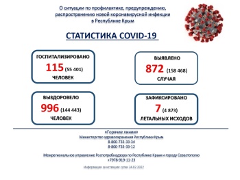 За истекшие сутки госпитализировано 115 пациентов, за все время на стационарном лечении находились 55 401 человек. Количество выздоровевших за сутки составляет 996 человек, выздоровевших за весь период - 144 443.