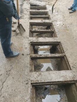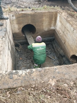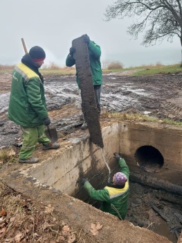 Рабочие очистили сильно загрязненные участки от грязи и мусора, чтобы вода могла беспрепятственно уходить с улицы, а также отремонтировали дренажные решетки.