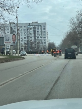 В Керчи 28 февраля осуждённые под охраной убирали дорогу. Они собирали грязь и подметали проезжую часть. Все рабочие были в жилетах. Перед работами установили предупреждающие знаки, - передает Керчь.ФМ