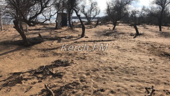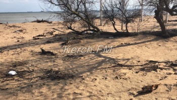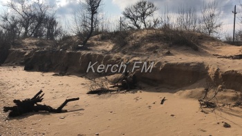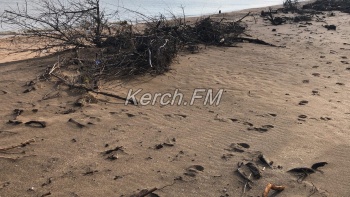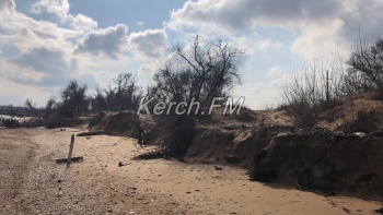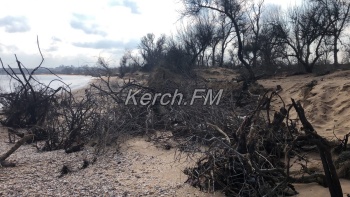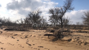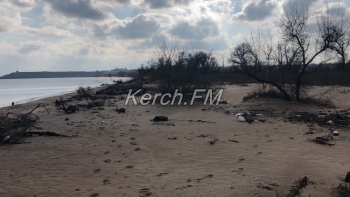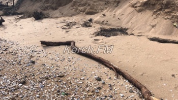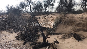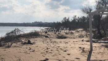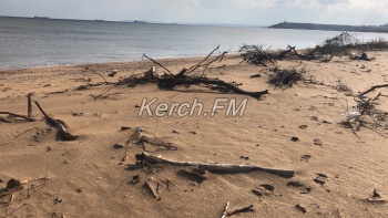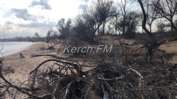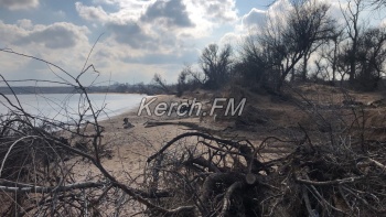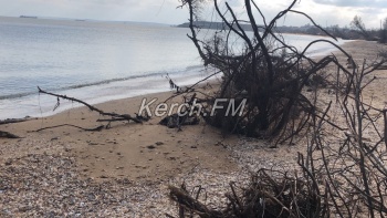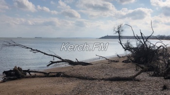 Так, как пляж в некоторых местах выглядит сейчас, не сразу и понятно, что это в Керчи. Корни деревьев и даже целые деревья подмыло водой и раскидало по побережью.