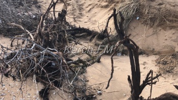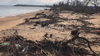 В Керчи на городском пляже шторм сначала забрал песок, а потом вернул, но не только его. Вместе с песком на берег вымыло мусор и деревья, - передает Керчь.ФМ.