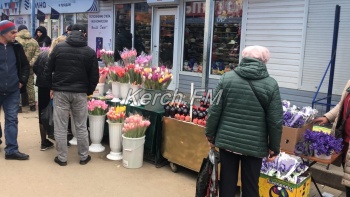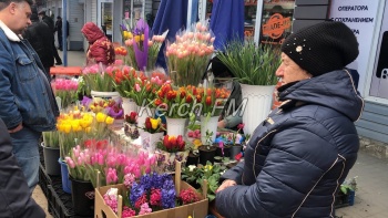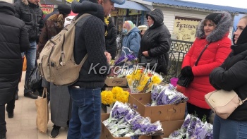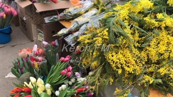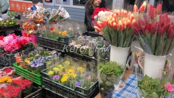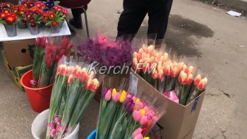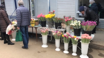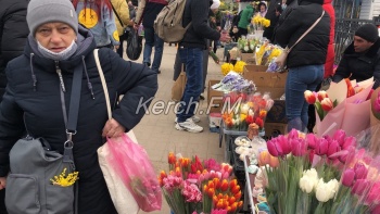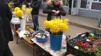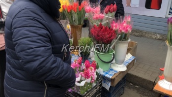 В Керчи почти на каждом угла начали торговать цветами - желающие скупают букеты перед 8 марта, - передает Керчь.ФМ.