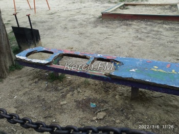 Кроме того, на одной из площадок есть и опасные конструкции для детей. Отметим, здесь срезали опасные качели, но взамен ничего не поставили. Еще отсюда убрали табличку, на которой были номера телефонов скорой и спасателей, или выломали