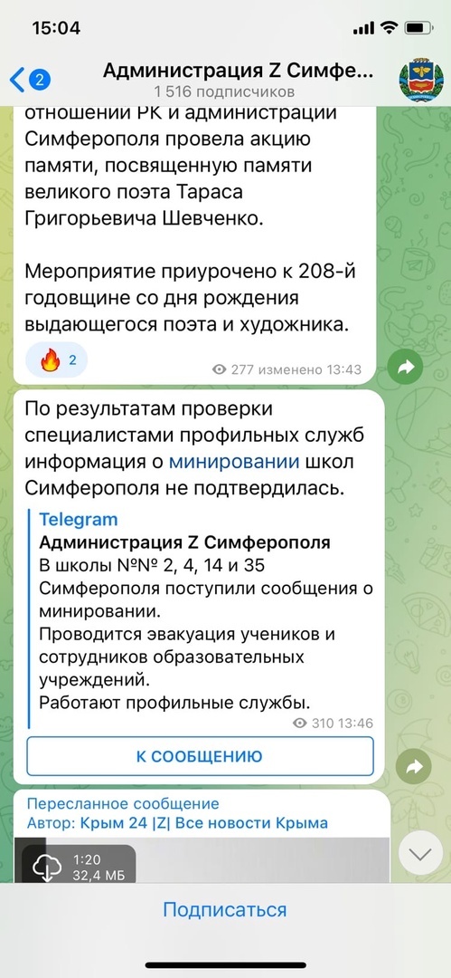 Напомним, утро в школах Симферополя началось с сообщений о минировании
